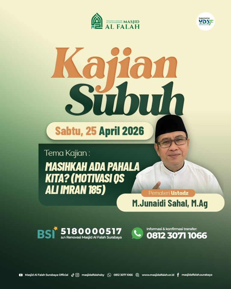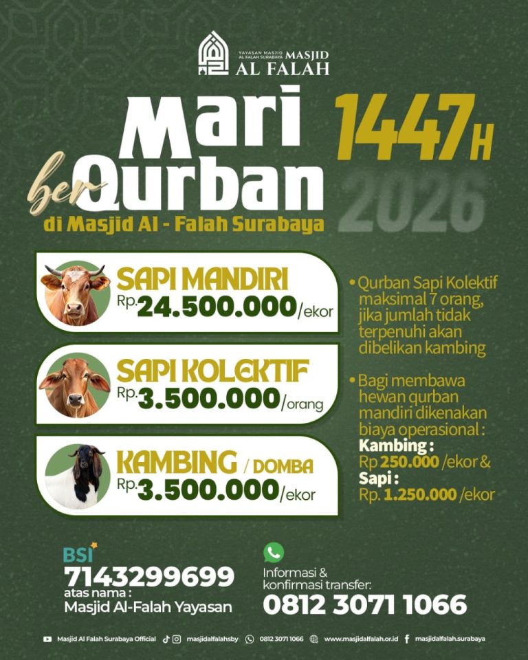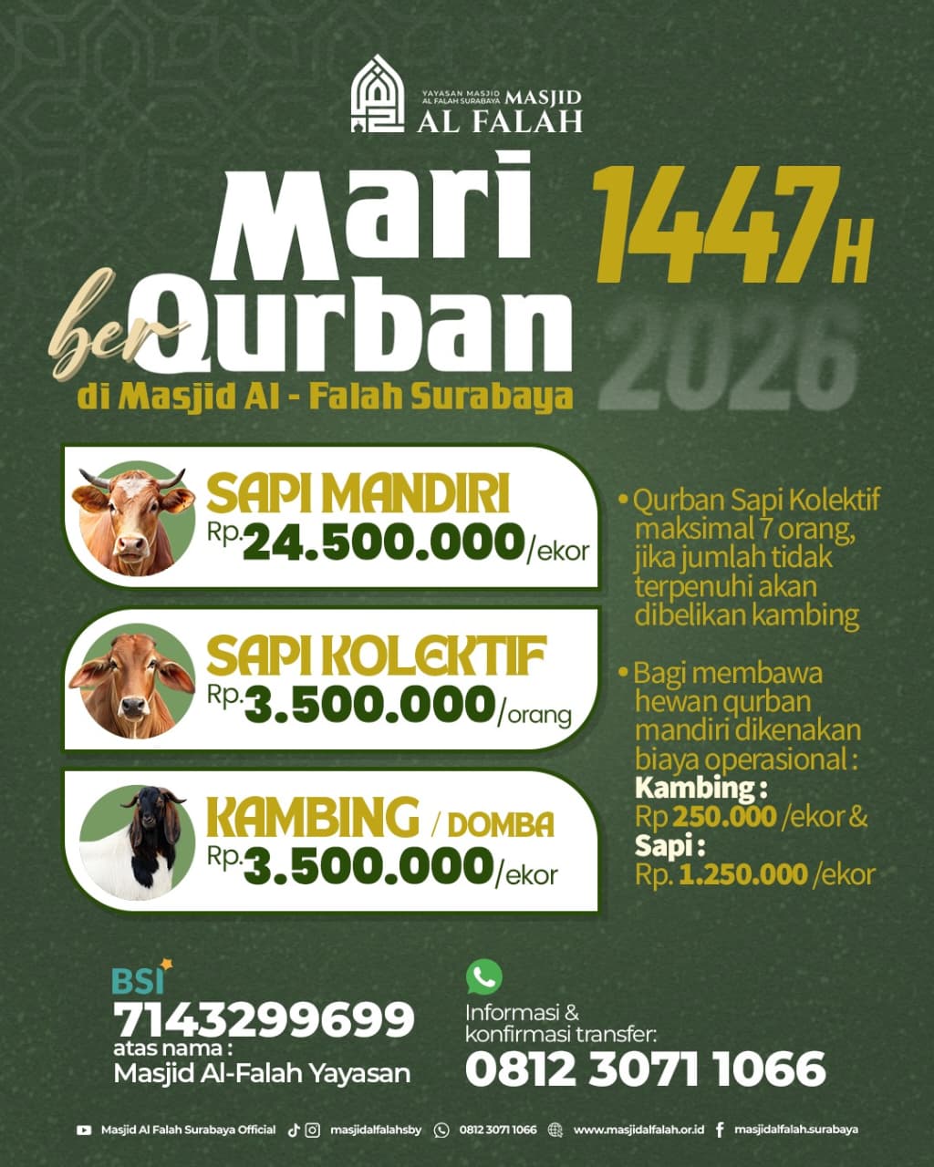 Selain itu, melihat kondisi masjid yang kian ramai oleh kunjungan jama’ah baik untuk melakukan ibadah sholat, mengaji bersama maupun mengikuti program kegiatan masjid, menjadi pertimbangan untuk dilakukannya penambahan kapasitas jama’ah masjid sebagai tambahan untuk memperbaiki sarana dan prasarana seperti toilet dan tempat wudhu, serta dapat membawa Masjid Al Falah menjadi salah satu masjid yang dapat memajukan umat Islam di Surabaya dengan semangat modernisme.